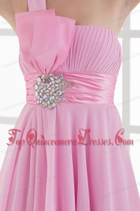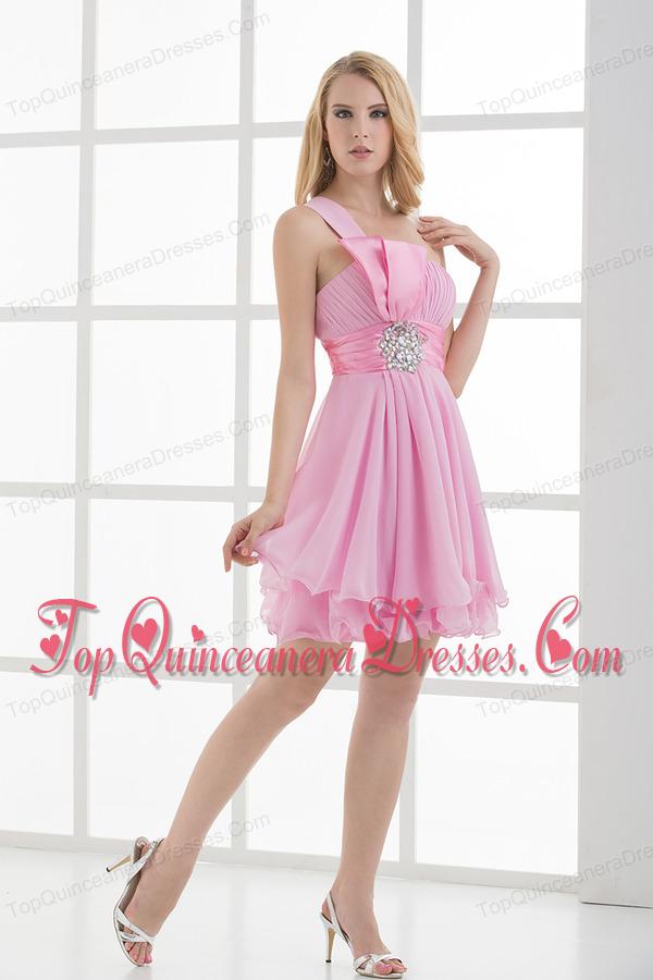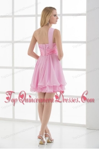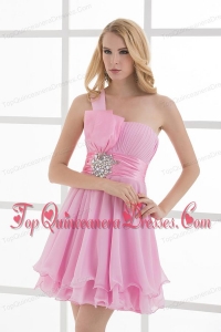 One Shoulder A-line Beading and Ruching Chiffon Dama Dresses