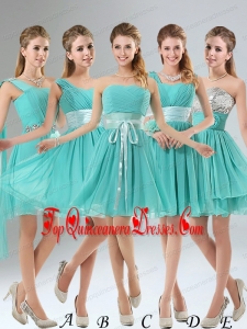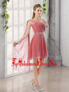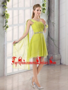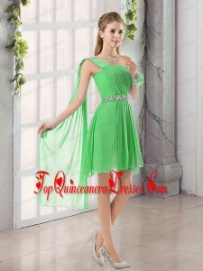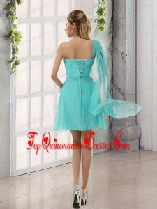 One Shoulder A Line Beading and Ruching Dama Dress with Lace Up