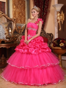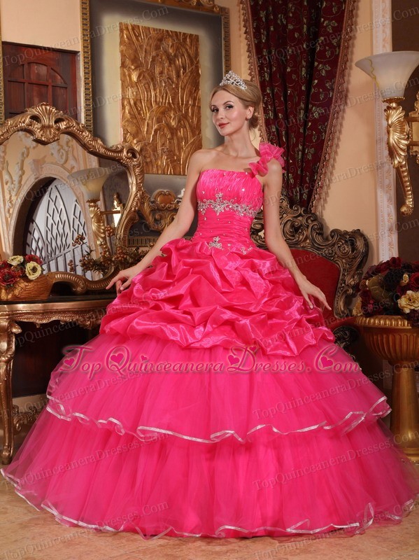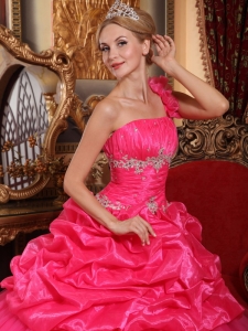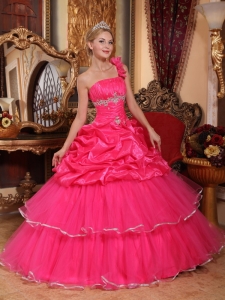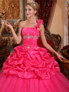 One Shoulder Beaded Quinceanera Dresses Hot Pink Pick-ups