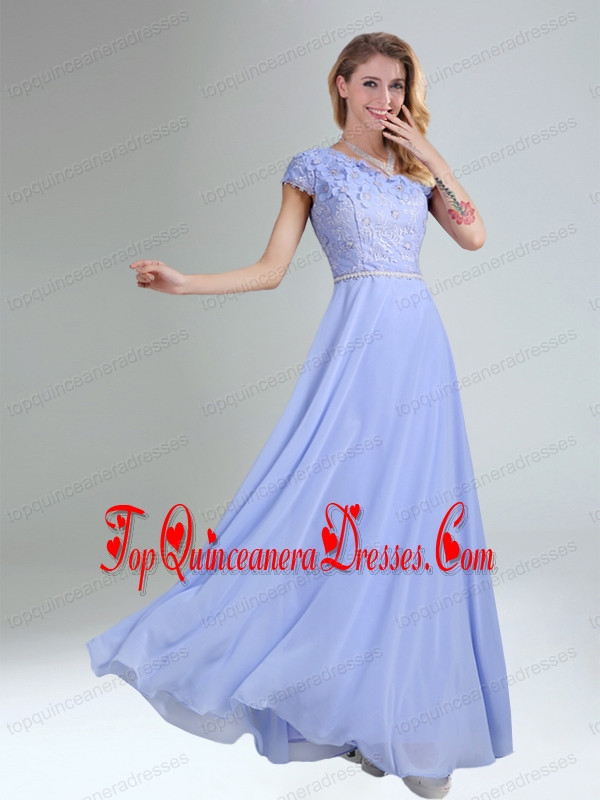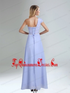 One Shoulder Belt Empire 2015 Appliques Dama Dress in Lavender