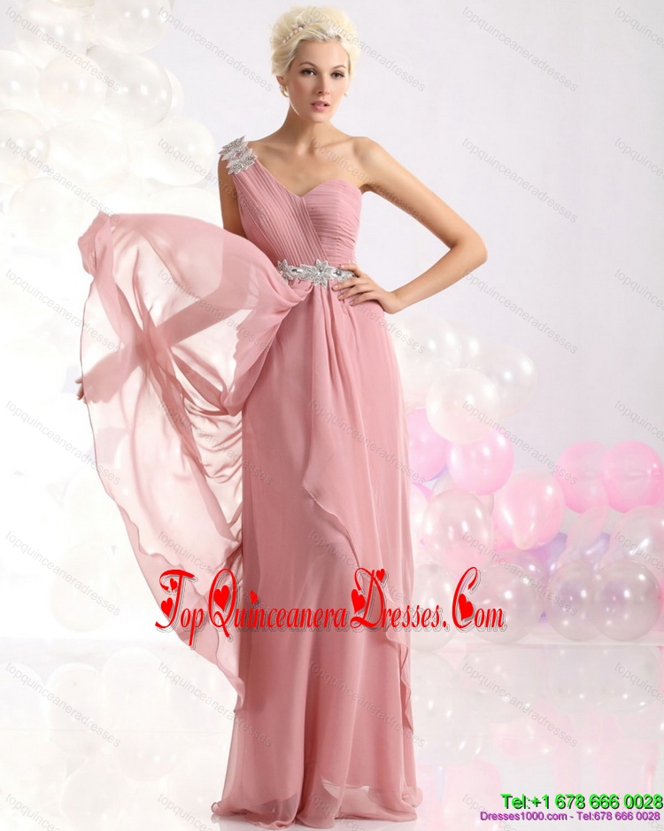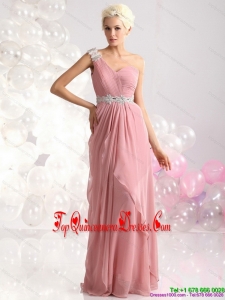 One Shoulder Gorgeous Prom Dresses with Hand Made Flowers and Ruching