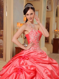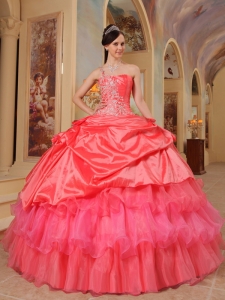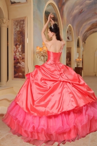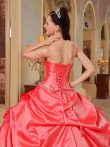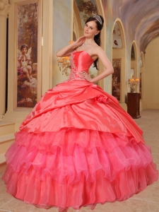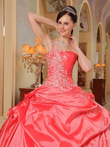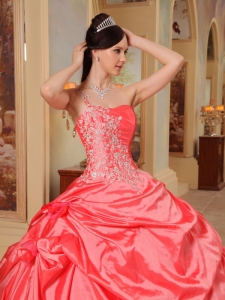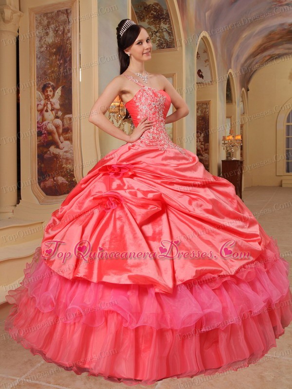 lovely ruffled sweet 16 dresses, One Shoulder Layers Coral Red Quinceanera Dress Ball Gown