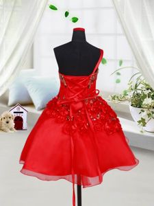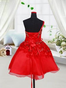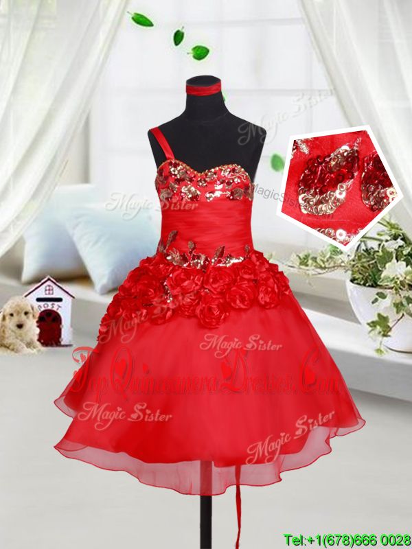 One Shoulder Organza Sleeveless Mini Length Little Girl Pageant Gowns and Sequins and Hand Made Flower