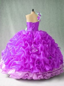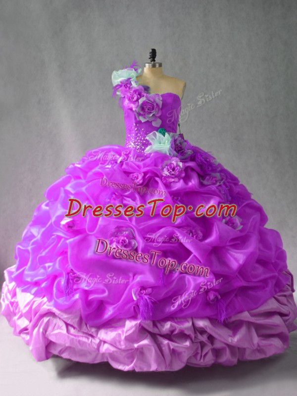 One Shoulder Sleeveless Organza Quinceanera Dresses Pick Ups and Hand Made Flower Lace Up