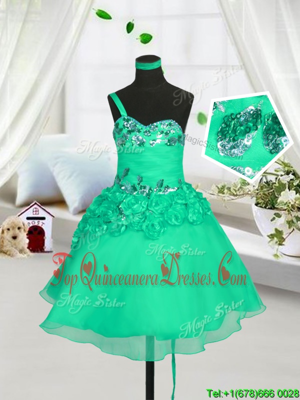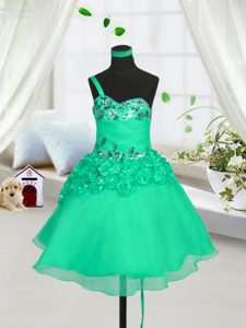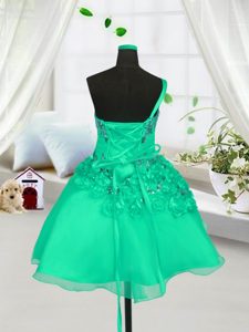One Shoulder Turquoise Sleeveless Organza Lace Up Little Girls Pageant Dress for Party and Wedding Party
