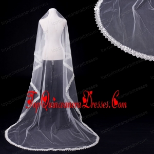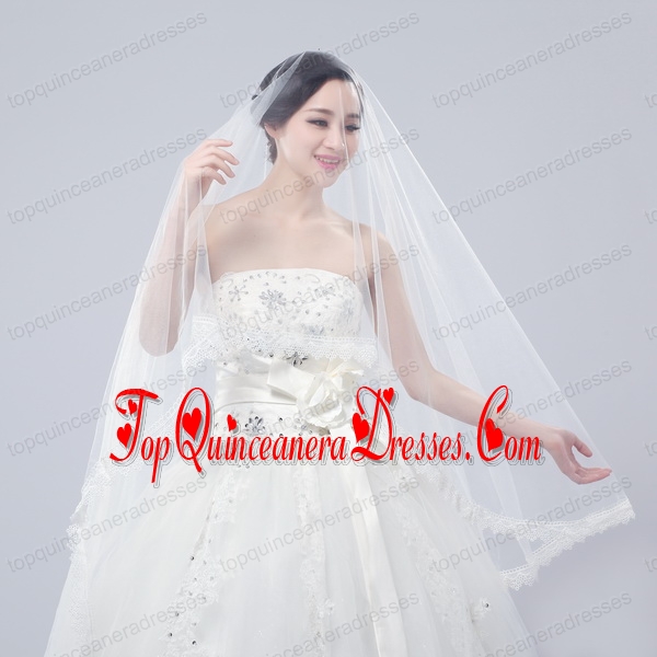 One-Tier Drop Veil Scalloped Edge Angle Cut Wedding Veils