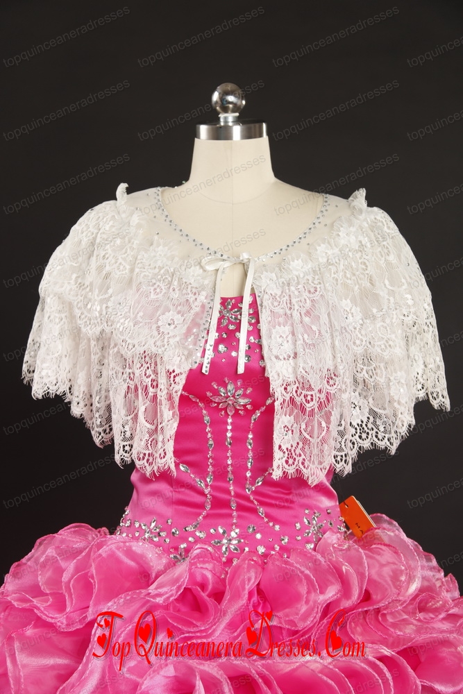 Open Front White Scoop Beading Shawls with Lace