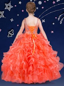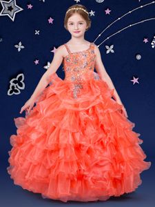 Orange Asymmetric Neckline Beading and Ruffled Layers Little Girl Pageant Dress Sleeveless Lace Up