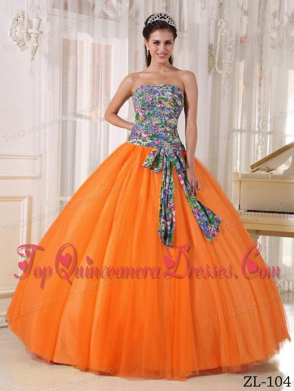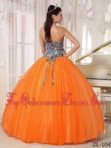 Orange Ball Gown Strapless Floor-length Tulle and Printing Sequins Quinceanera Dress