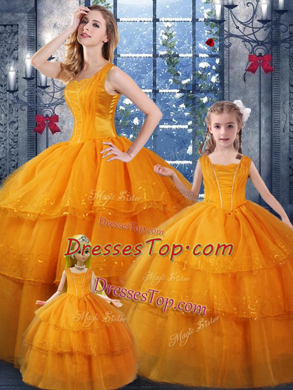 Orange Ball Gowns Ruffled Layers 15th Birthday Dress Lace Up Organza Sleeveless Floor Length