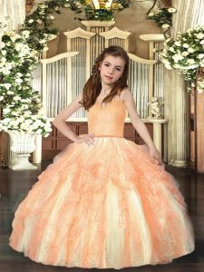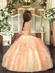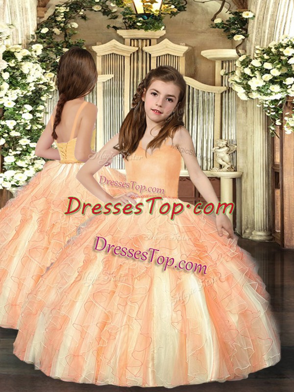 Orange Ball Gowns Straps Sleeveless Tulle Floor Length Lace Up Ruffles Little Girl Pageant Gowns