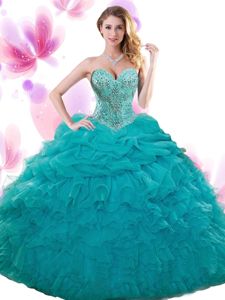 Orange Ball Gowns Tulle Sweetheart Sleeveless Beading and Appliques and Ruffles Floor Length Lace Up 15th Birthday Dress