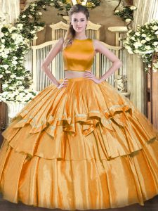 Orange Criss Cross High-neck Ruffled Layers Quince Ball Gowns Tulle Sleeveless
