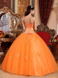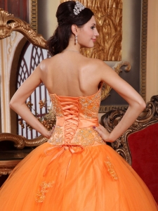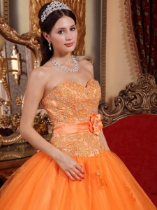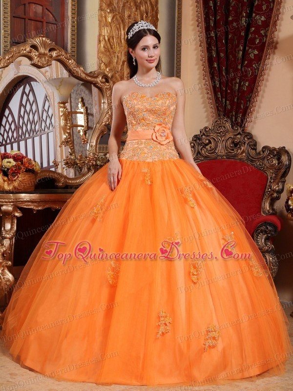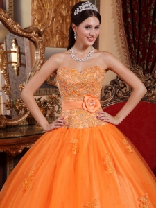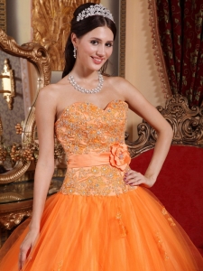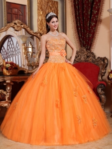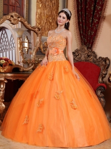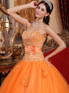 Orange Hand Made Flower Quinceanera Dresses Appliques Tulle