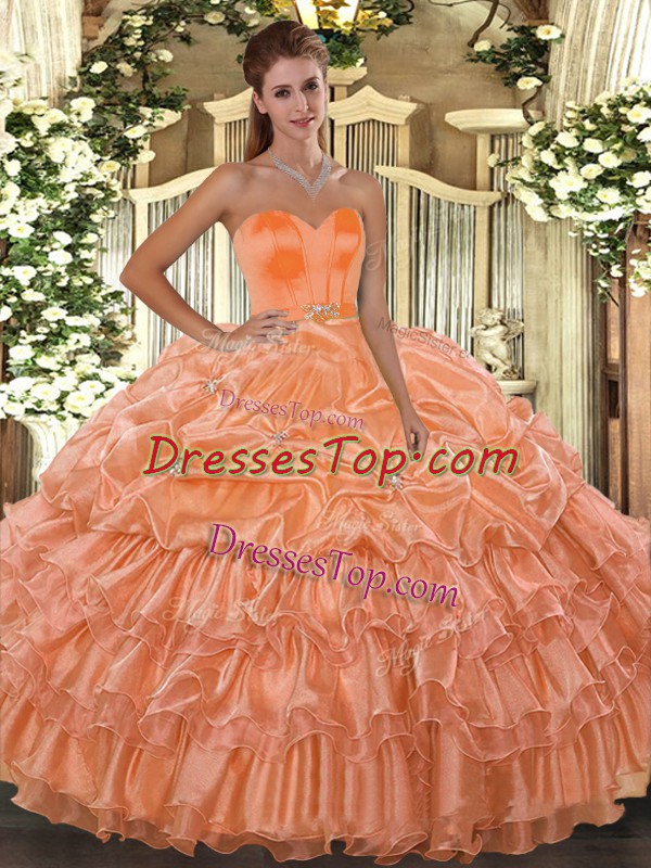 Orange Lace Up Sweetheart Beading and Ruffled Layers Sweet 16 Dresses Organza Sleeveless