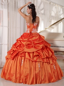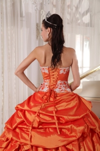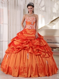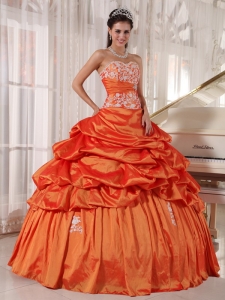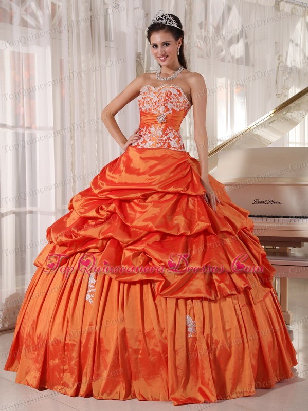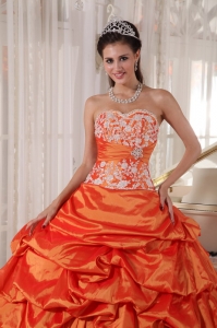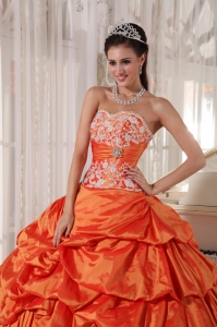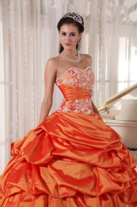 Orange Quinceanera Dress Sweetheart Taffeta Appliques Ruch