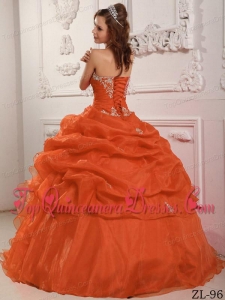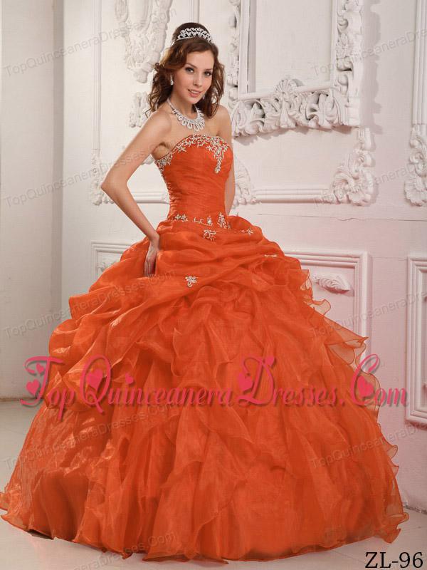 Orange Red Ball Gown Strapless Floor-length Organza Beading And Ruffles Quinceanera Dress