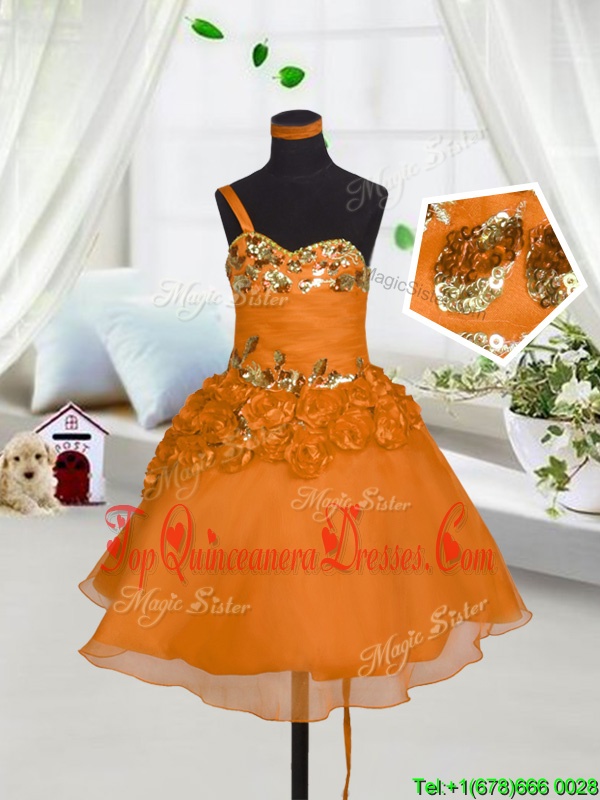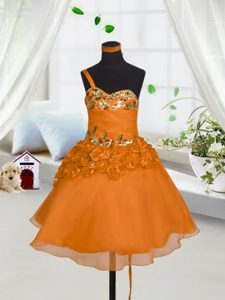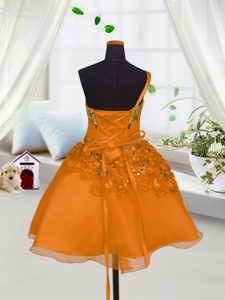 Orange Red Lace Up Sweetheart Beading and Hand Made Flower High School Pageant Dress Organza Sleeveless