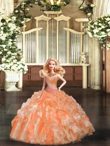 Orange Red Lace Up Sweetheart Beading and Ruffles Quinceanera Gown Tulle Sleeveless