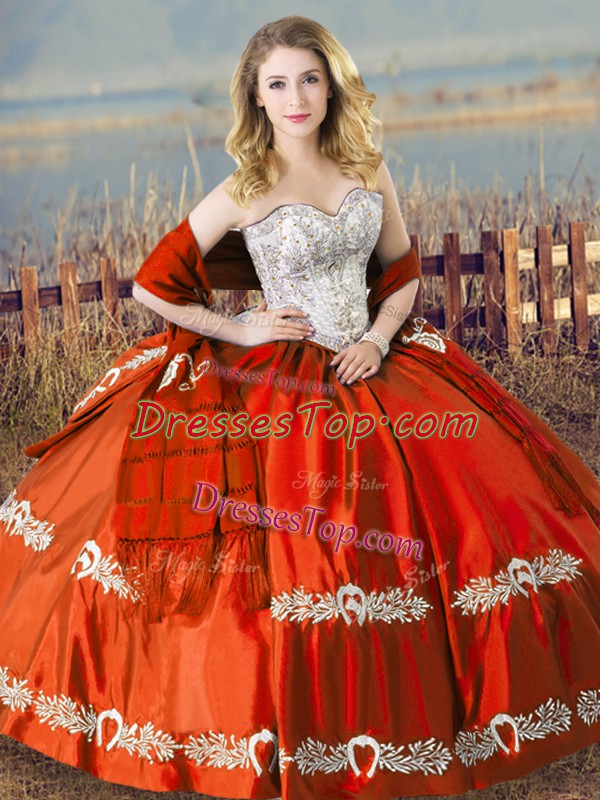 Orange Red Sleeveless Beading and Embroidery Floor Length Sweet 16 Dress