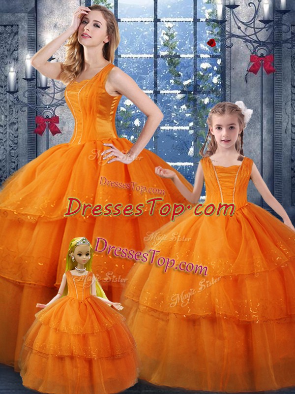 Orange Sleeveless Ruffled Layers Floor Length Sweet 16 Quinceanera Dress