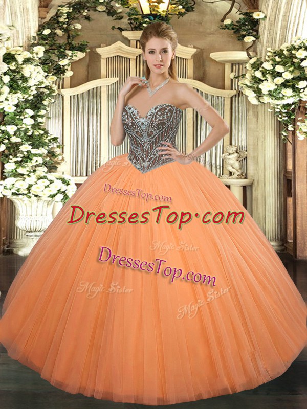 Orange Sleeveless Tulle Lace Up Quinceanera Gown for Military Ball and Sweet 16 and Quinceanera