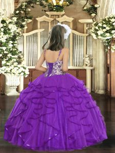Orange Tulle Lace Up Pageant Gowns For Girls Sleeveless Floor Length Beading and Ruffles