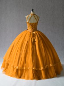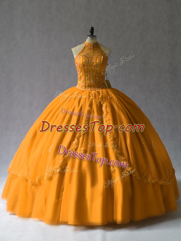 Orange Tulle Lace Up Sweet 16 Dress Beading