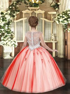 Orange Zipper Little Girl Pageant Gowns Beading and Appliques Sleeveless Floor Length