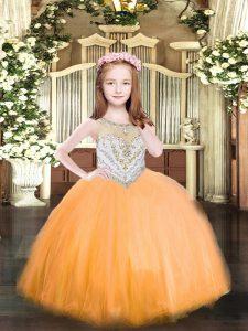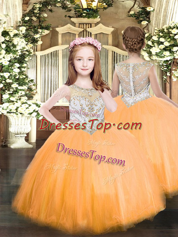 Orange Zipper Scoop Beading Little Girls Pageant Gowns Tulle Sleeveless