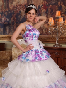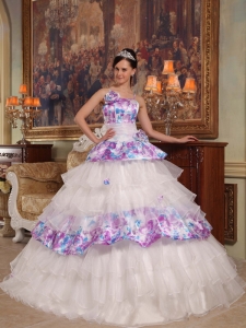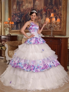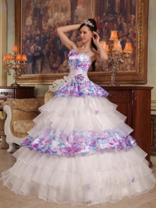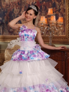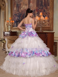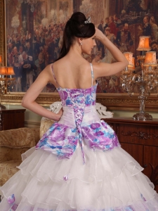 Organza and Printing Tiers Quinceanera Dress with Straps