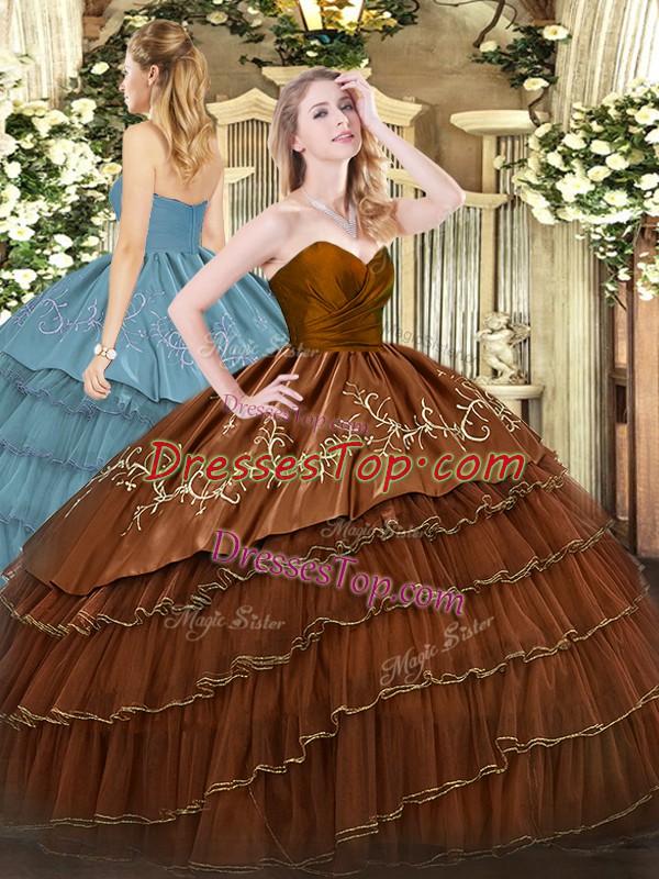 Organza and Taffeta Sleeveless Floor Length Dama Dress for Quinceanera and Embroidery and Ruffled Layers