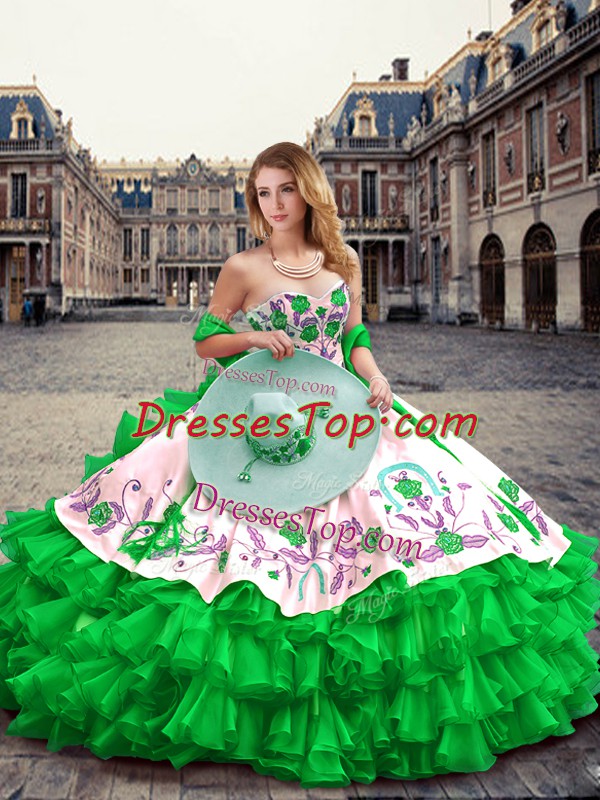 Organza and Taffeta Sleeveless Floor Length Quinceanera Dress and Embroidery and Ruffled Layers