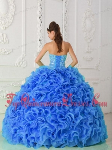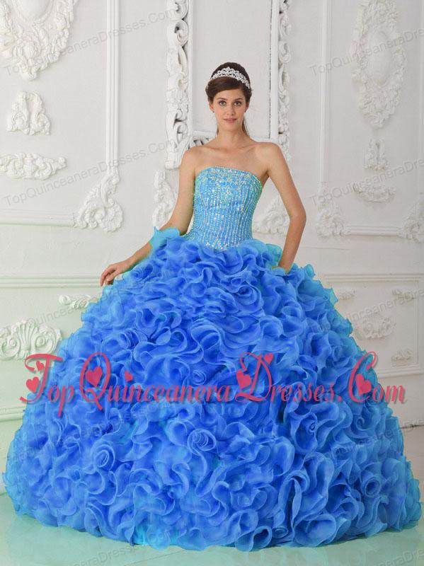 Organza Ball Gown Beaded Royal Blue Discount Quinceanera Dresses with Strapless