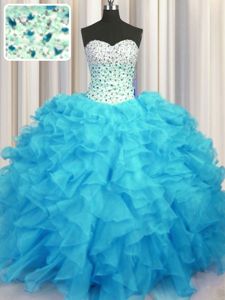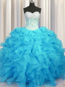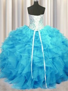 Organza Lace Up Quinceanera Dress Sleeveless Floor Length Beading and Ruffles