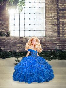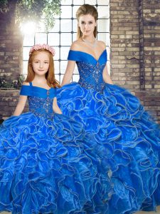 Organza Off The Shoulder Sleeveless Lace Up Beading and Ruffles 15th Birthday Dress in Royal Blue