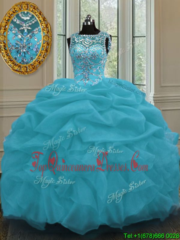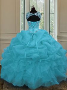 Organza Scoop Sleeveless Lace Up Beading and Pick Ups Vestidos de Quinceanera in Baby Blue