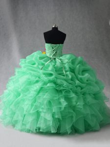 Organza Scoop Sleeveless Lace Up Beading and Ruffles and Pick Ups Quince Ball Gowns in Apple Green
