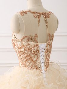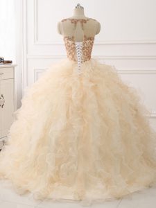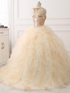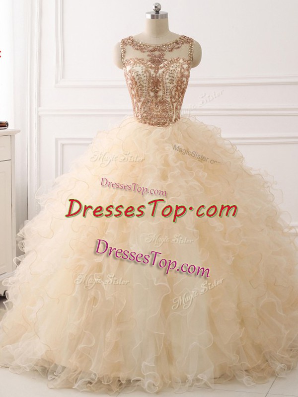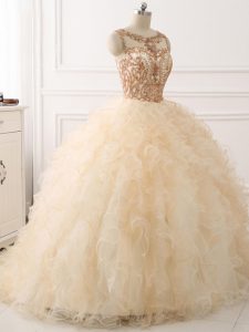 Organza Sleeveless Ball Gown Prom Dress Sweep Train and Beading and Ruffles