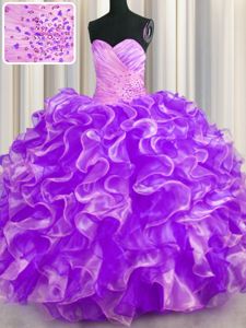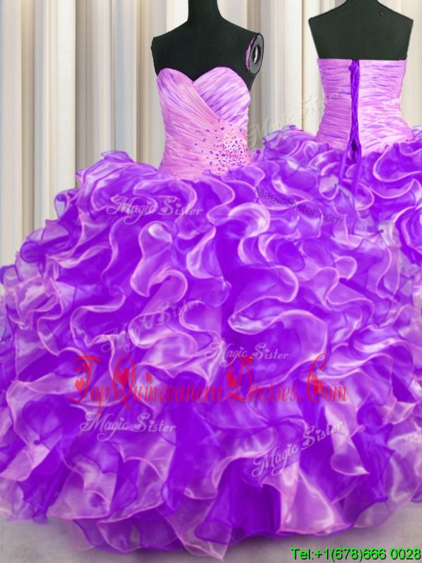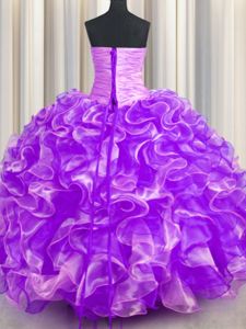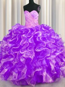 Organza Sleeveless Floor Length 15 Quinceanera Dress and Beading and Ruffles