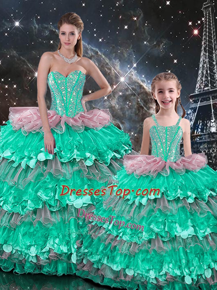 Organza Sleeveless Floor Length 15 Quinceanera Dress and Beading and Ruffles