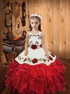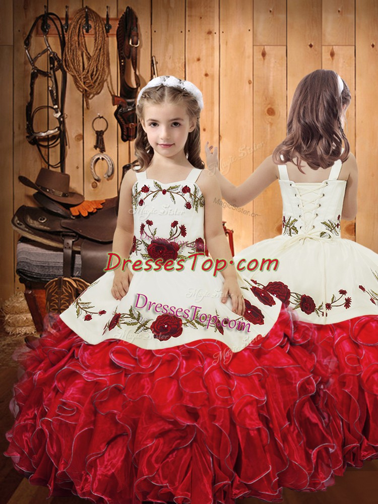 Organza Sleeveless Floor Length Child Pageant Dress and Embroidery and Ruffles
