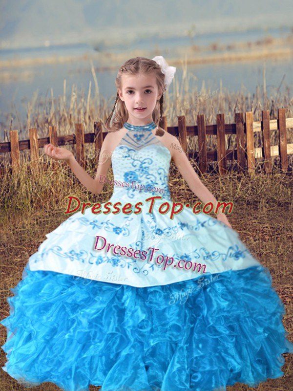 Organza Sleeveless Floor Length Kids Pageant Dress and Beading and Embroidery and Ruffles