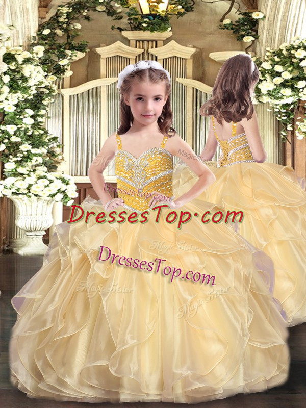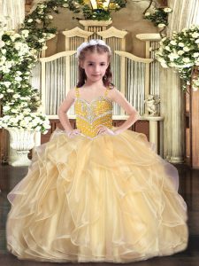 Organza Sleeveless Floor Length Little Girl Pageant Gowns and Beading and Ruffles