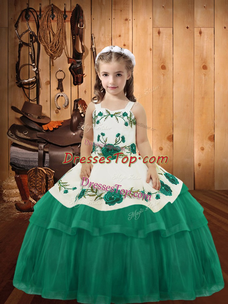 Organza Sleeveless Floor Length Little Girls Pageant Gowns and Embroidery and Ruffled Layers