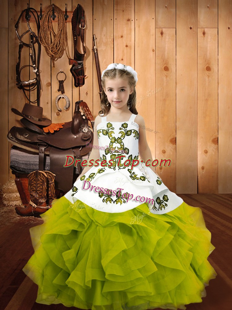 Organza Sleeveless Floor Length Pageant Dress Toddler and Embroidery and Ruffles