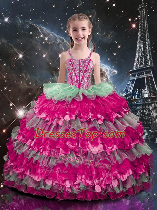 Organza Sleeveless Floor Length Pageant Dress Wholesale and Beading and Ruffled Layers