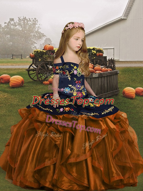Organza Sleeveless Floor Length Pageant Dress Wholesale and Embroidery and Ruffles