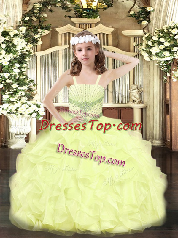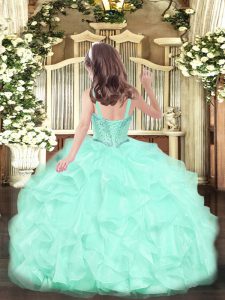 Organza Sleeveless Floor Length Pageant Gowns For Girls and Beading and Ruffles