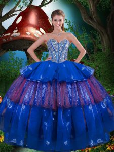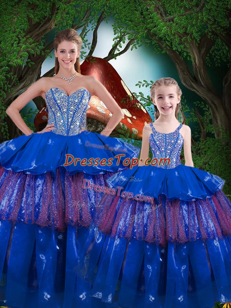 Organza Sleeveless Floor Length Quinceanera Dress and Beading and Ruffled Layers